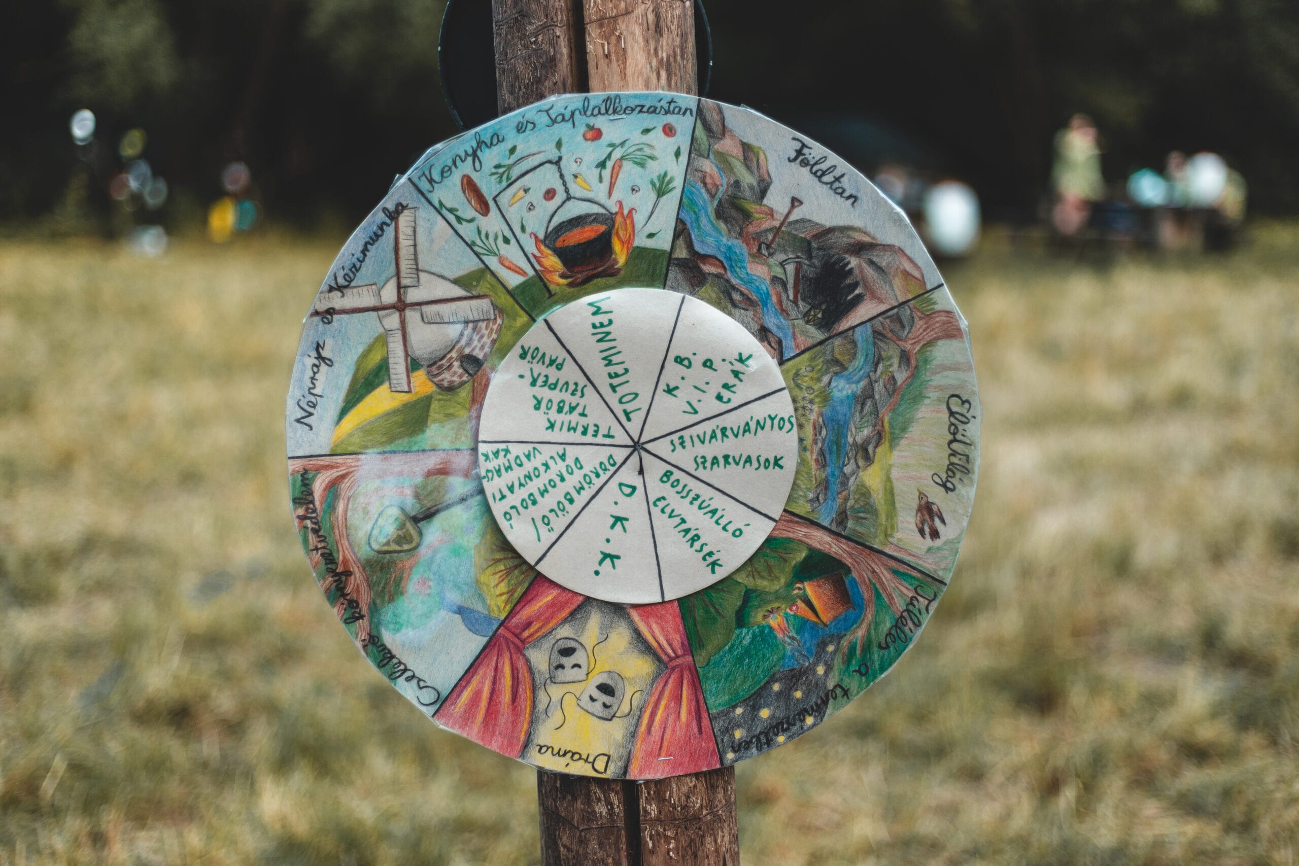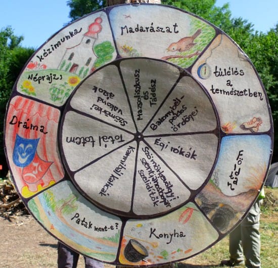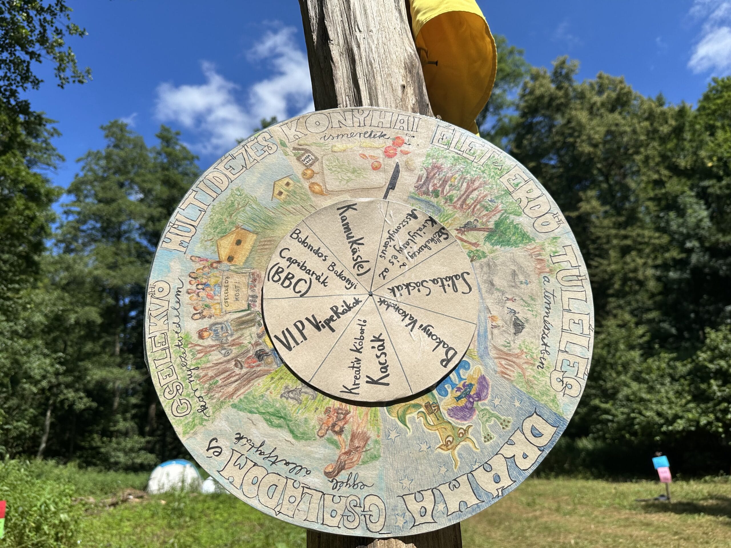 A totem másik tartozéka az úgynevezett tábori óra. Nem kell megijedni, azért annyira nem lépünk ki a civilizált világból, hogy új időzónát hozzunk létre a táborban! Ez az úgynevezett tábori óra arra szolgál, hogy az egyes családok minden nap tisztában legyenek vele, hogy milyen szakmai program vár rájuk, és a további napok elfoglaltságairól is előre tudjanak tájékozódni.