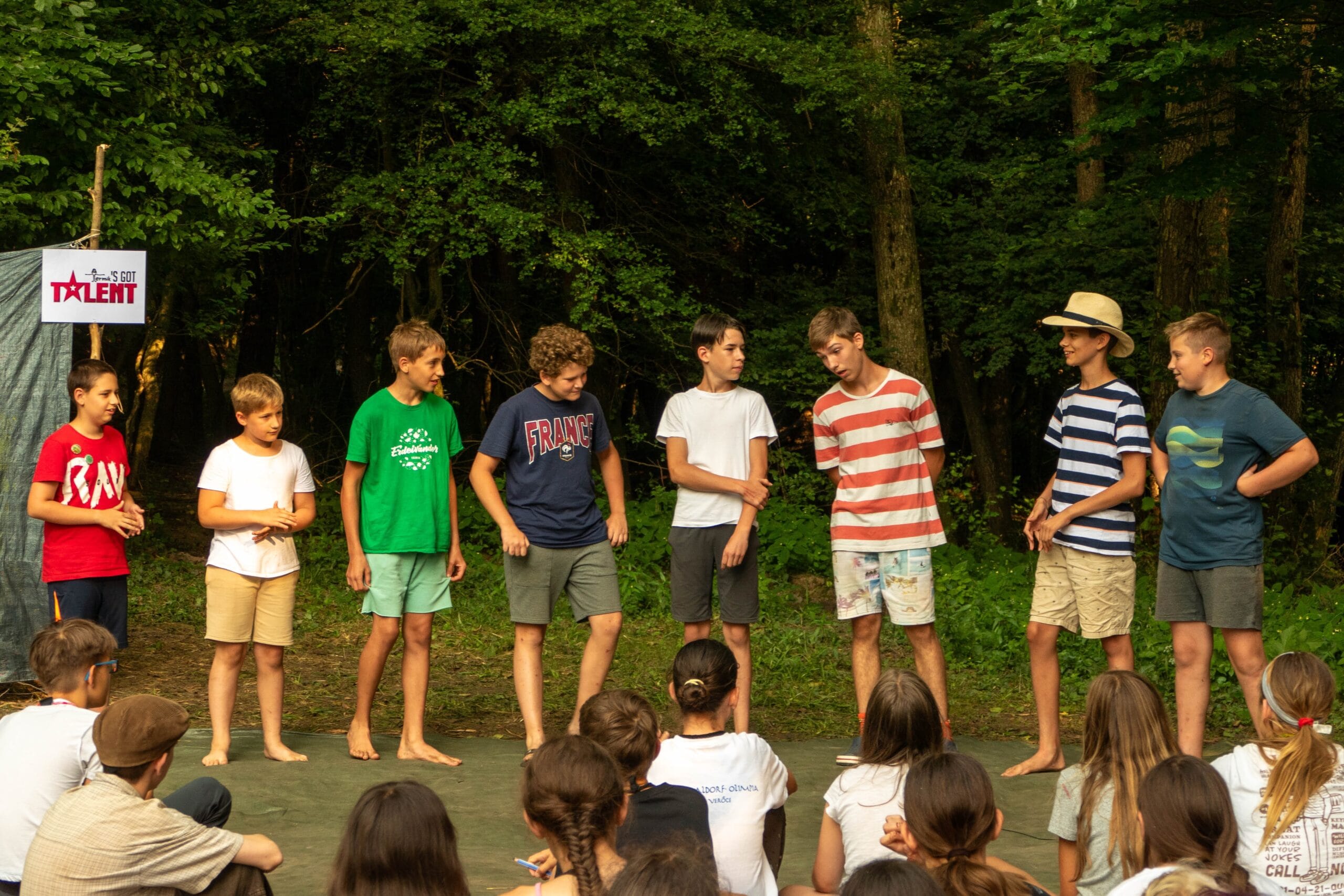 Az árnyas, félköríves színpaddal szemben kidőlt, korhadó fatörzseket fektetünk le szép sorjában, ahol a színház atmoszférájától megilletődött táborlakók foglalnak helyet. A napi drámafoglalkozáson részt vevő csoport általában mindent megtesz azért, hogy a helyszín nyújtotta természetes díszleteket maximálisan kihasználja. Az évek során volt már itt fáramászás, kötélhinta, „lebegő” táborozó és nem utolsósorban forró kása a hason (2008, Varbó)…