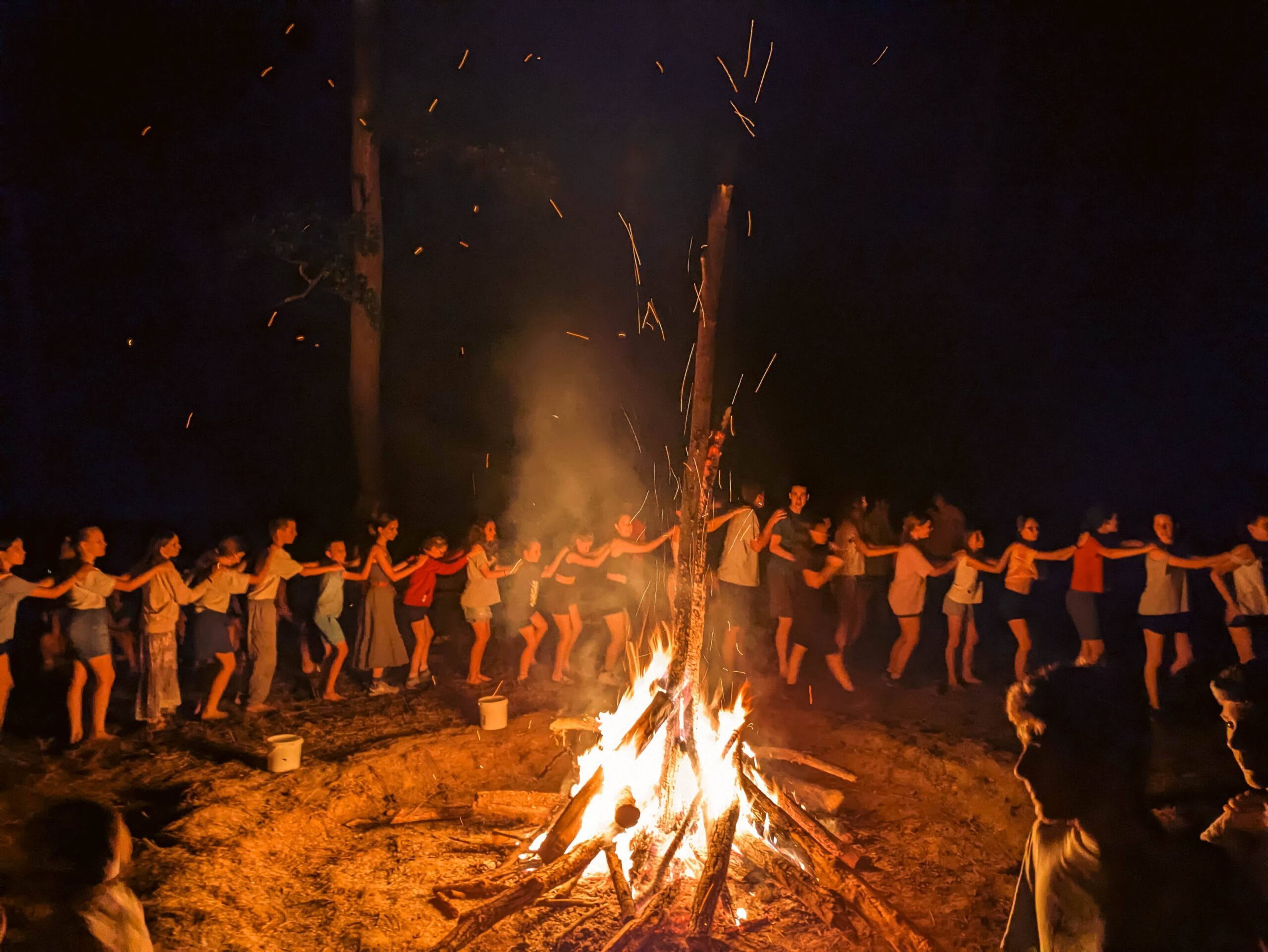 A tábori tűzrakóhely bizony nem egy olyan jelentéktelen objektum, mint amit a három méter átmérőjű, körbeárkolt, hamuval megtelt felület sejtetni enged. A máglya a tábor kultikus központja, az esti mese és éneklések helyszíne, általában a rét közepén helyezkedik el. Külön érdekesség, hogy esténként akkora tüzek szoktak lobogni, hogy a másnap reggel korán kelők előszeretettel melegítik talpacskáikat a még akkor is kellemesen langyos hamuban, a reggelire várva. A máglya közvetlen tartozéka a közeli faraktár, ahová a tábor elején megfelelő mennyiségű (szellősen rakva úgy 30 köbméter) fát halmozunk fel.